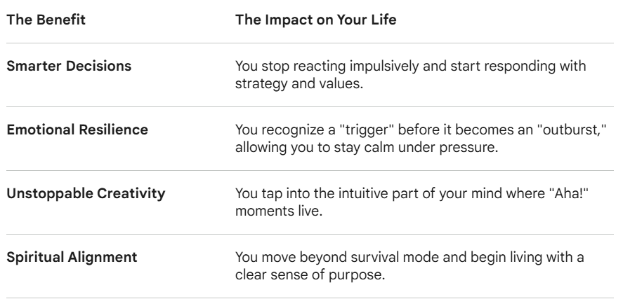 Mindfulness & Meditation: This is the gym for your 5%. It trains you to stay present so the "autopilot" doesn't take over. Even 10 minutes a day creates a "gap" between a stimulus and your reaction.
